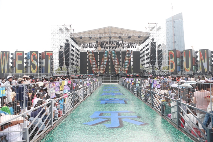 上海西岸音乐节已是连续第二年在徐汇滨江举办。在为期三天的音乐节上,众多人气乐队、实力唱将、韩流偶像你方唱罢我登场。崔健、罗大佑、五月天、苏打绿、丁当、张悬、权志龙、EXO-M这些在乐坛与歌迷心中响当当的名字,以每组50分钟的热力演出让第二届上海西岸音乐节不仅成为沪上票房有史以来“最火爆”的音乐节,也让到场的各年龄层次的歌迷全都能过足瘾,三天总计45000张门票在演出前一周就几近售罄。