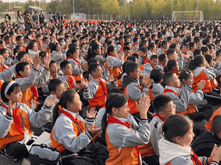 10月14日,专场演出在巴楚县第二中学精彩上演,为第二中学、第六小学 1600 余名师生带来一场融合中华传统诗词与现代舞台艺术的视听盛宴。