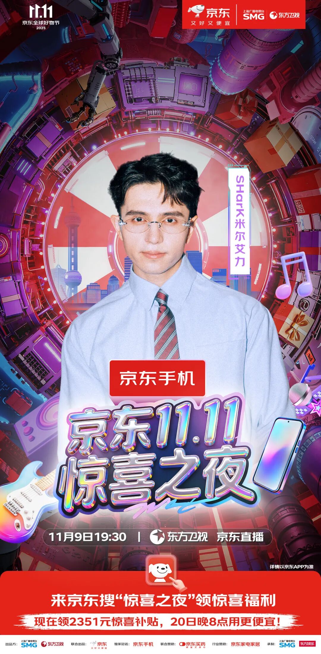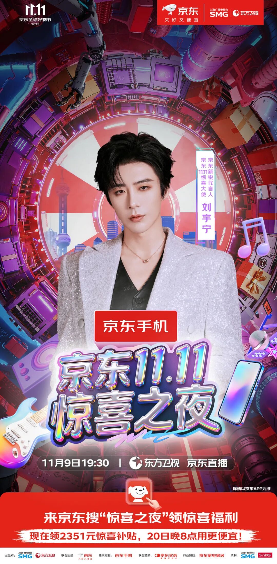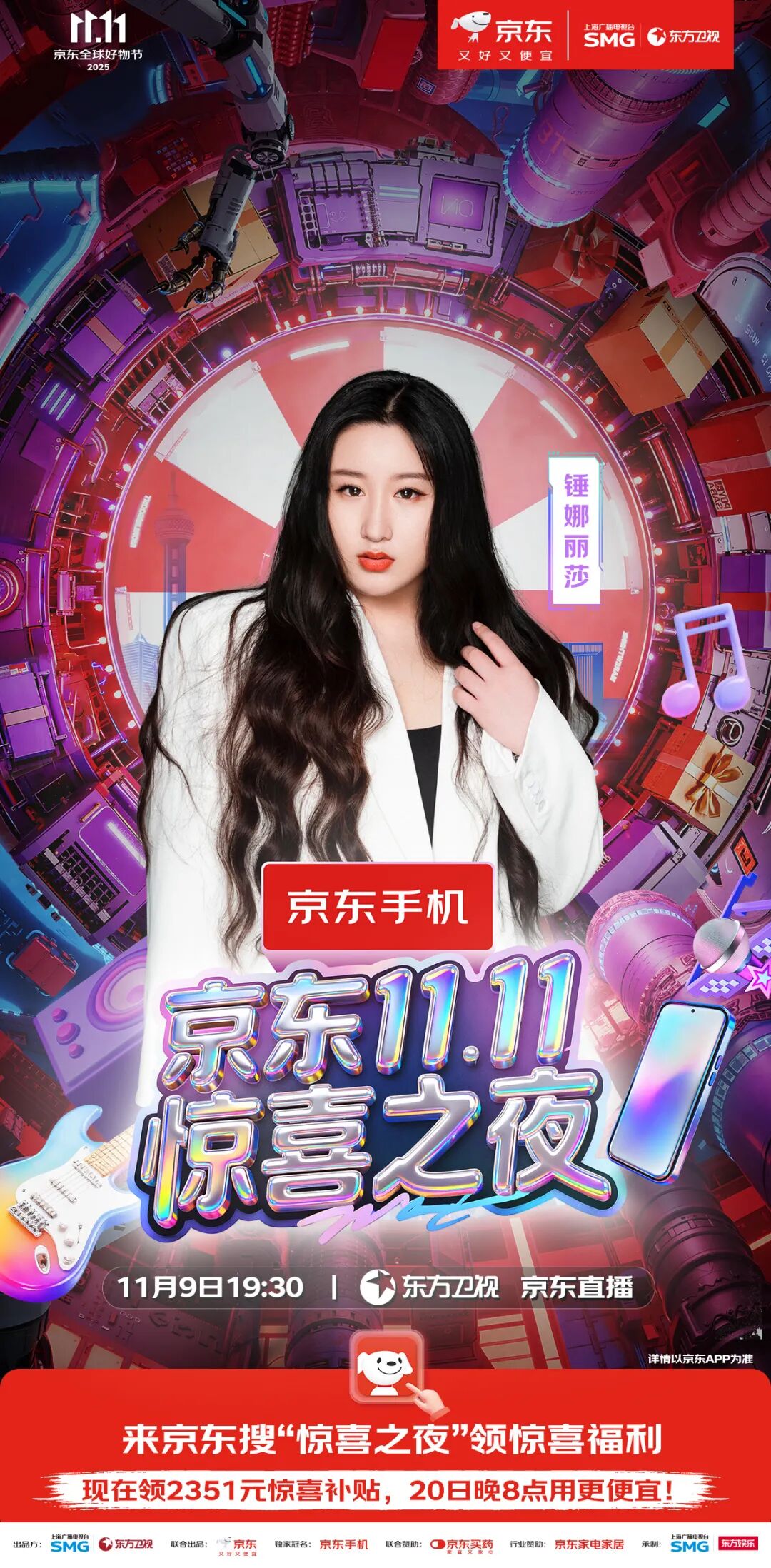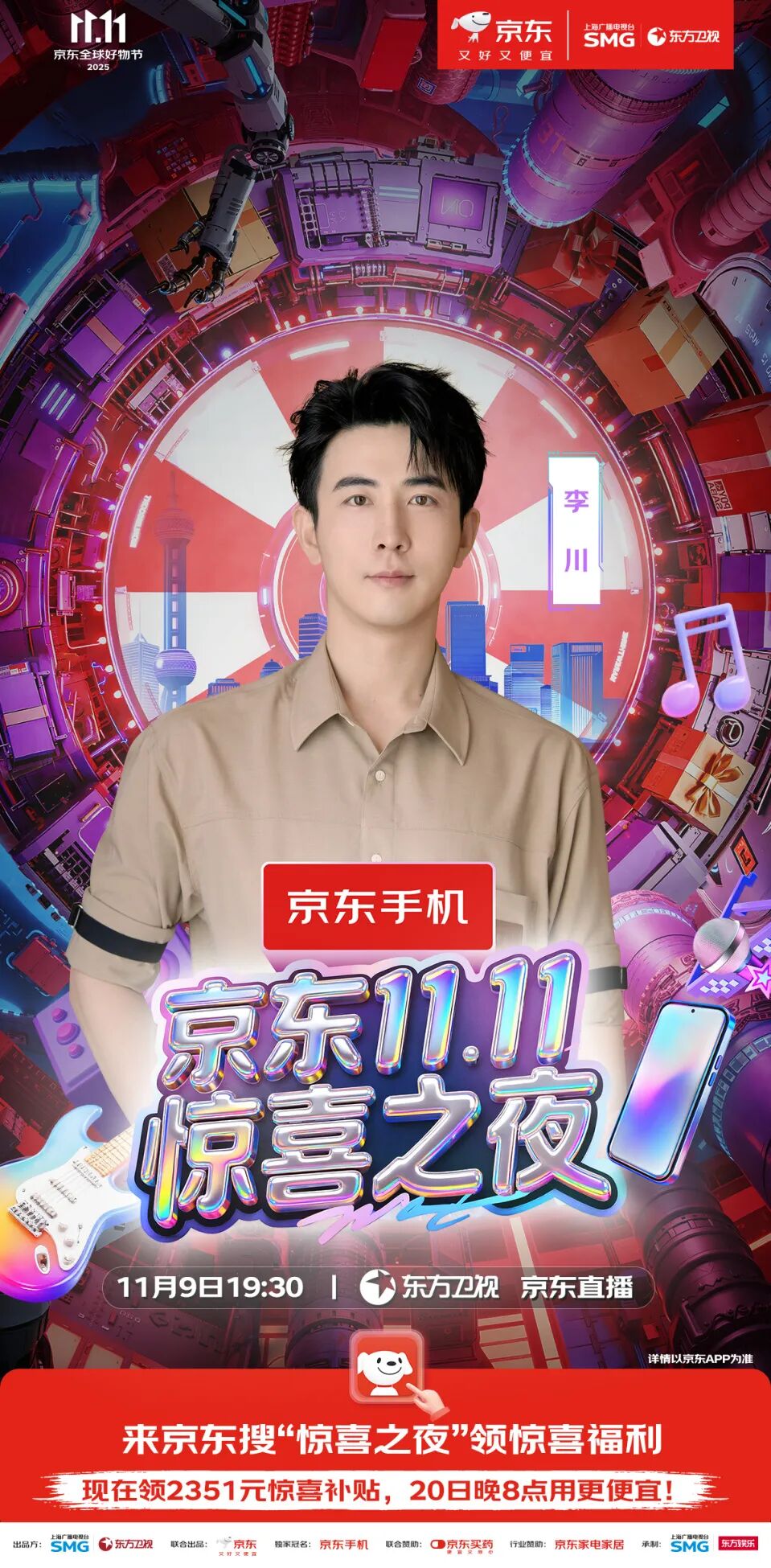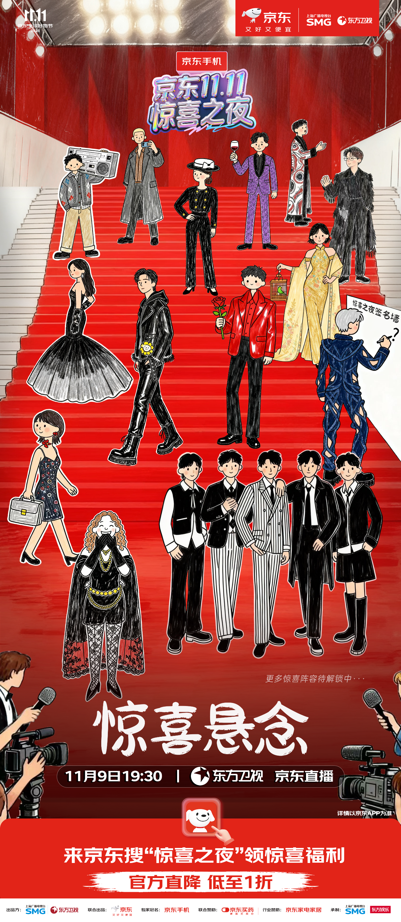 最终精彩,敬请锁定11月9日19:30东方卫视、东方娱乐全媒体矩阵及京东站内直播。惊喜层层递进,热度不断升级,这场盛会,等你亲自来开启!