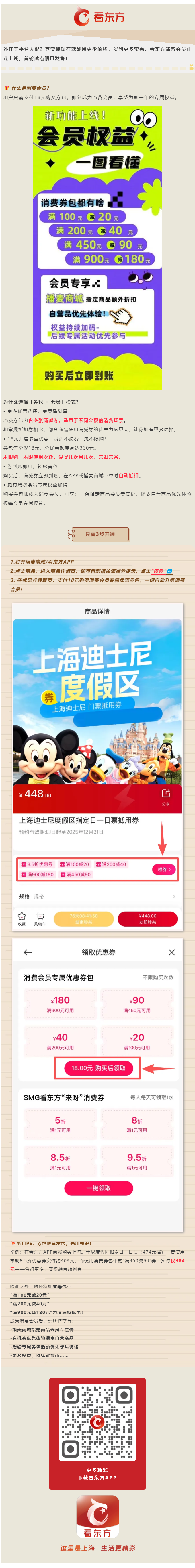 18元看东方消费会员=不限次满减优惠!
