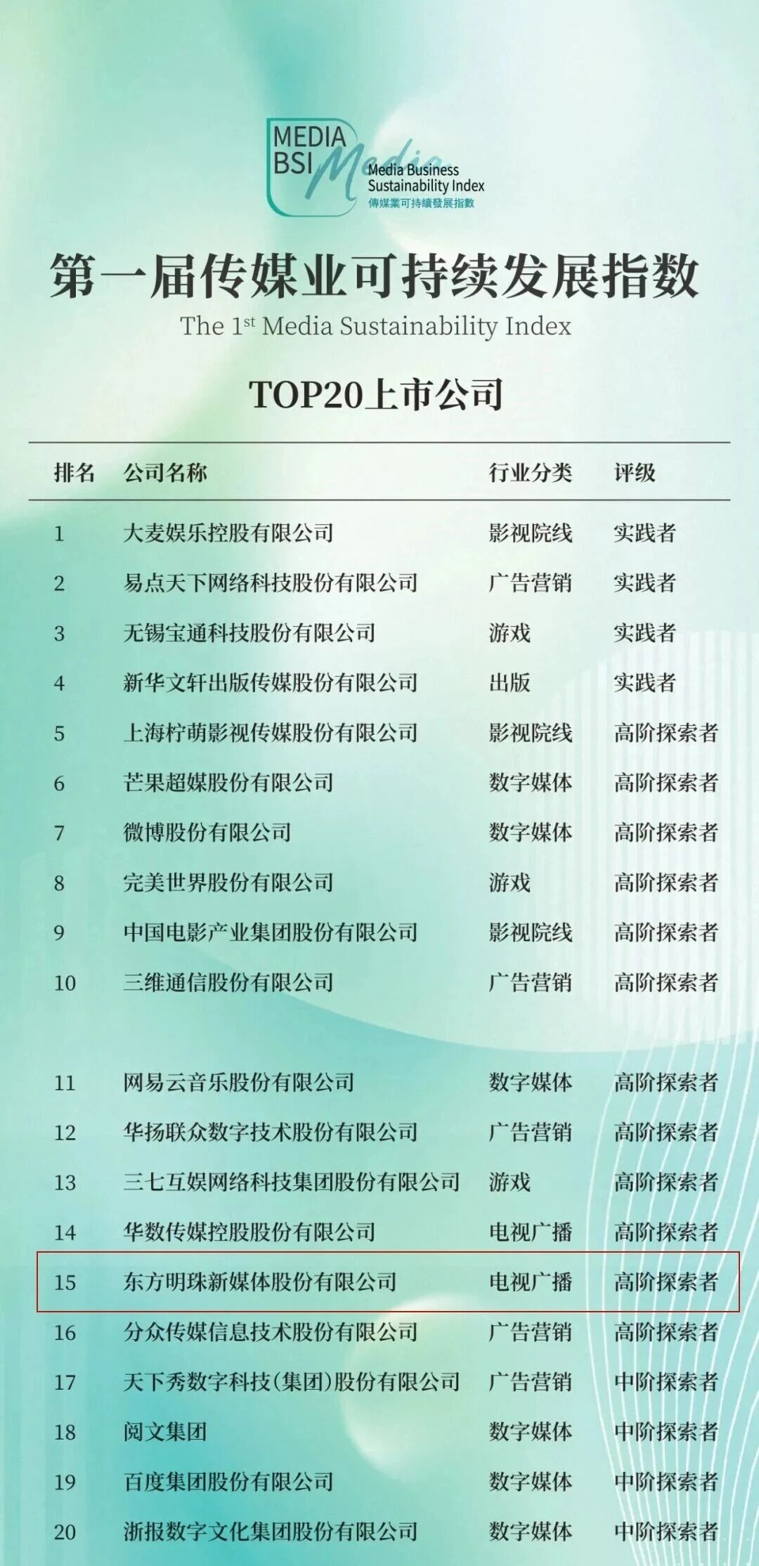 第一届传媒业可持续发展指数