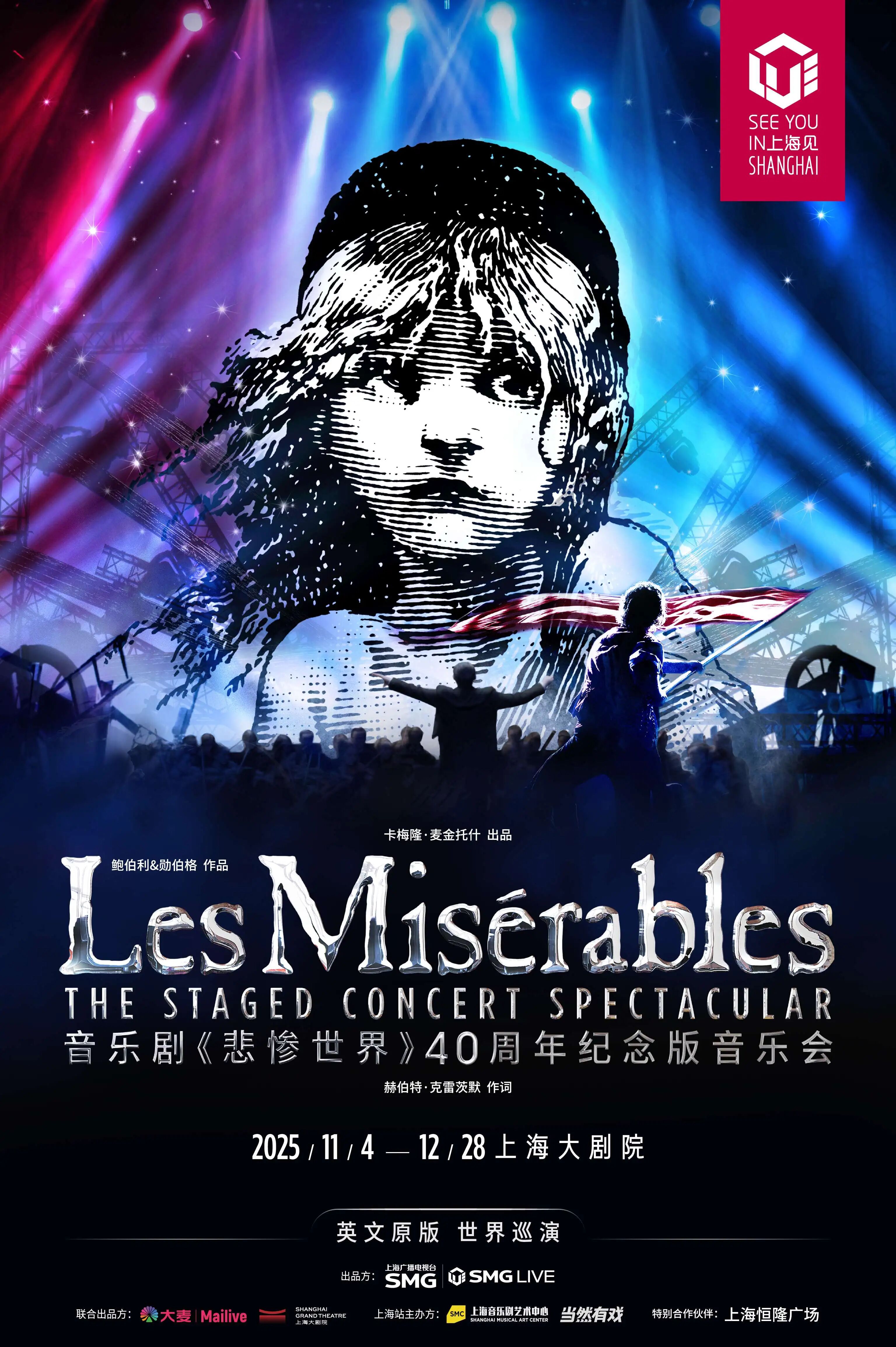 11月4日,由上海广播电视台、上海文广演艺集团出品,大麦Mailive、上海大剧院联合出品,上海音乐剧艺术中心、“当然有戏”主办的音乐剧《悲惨世界》40周年纪念版音乐会正式亮相。