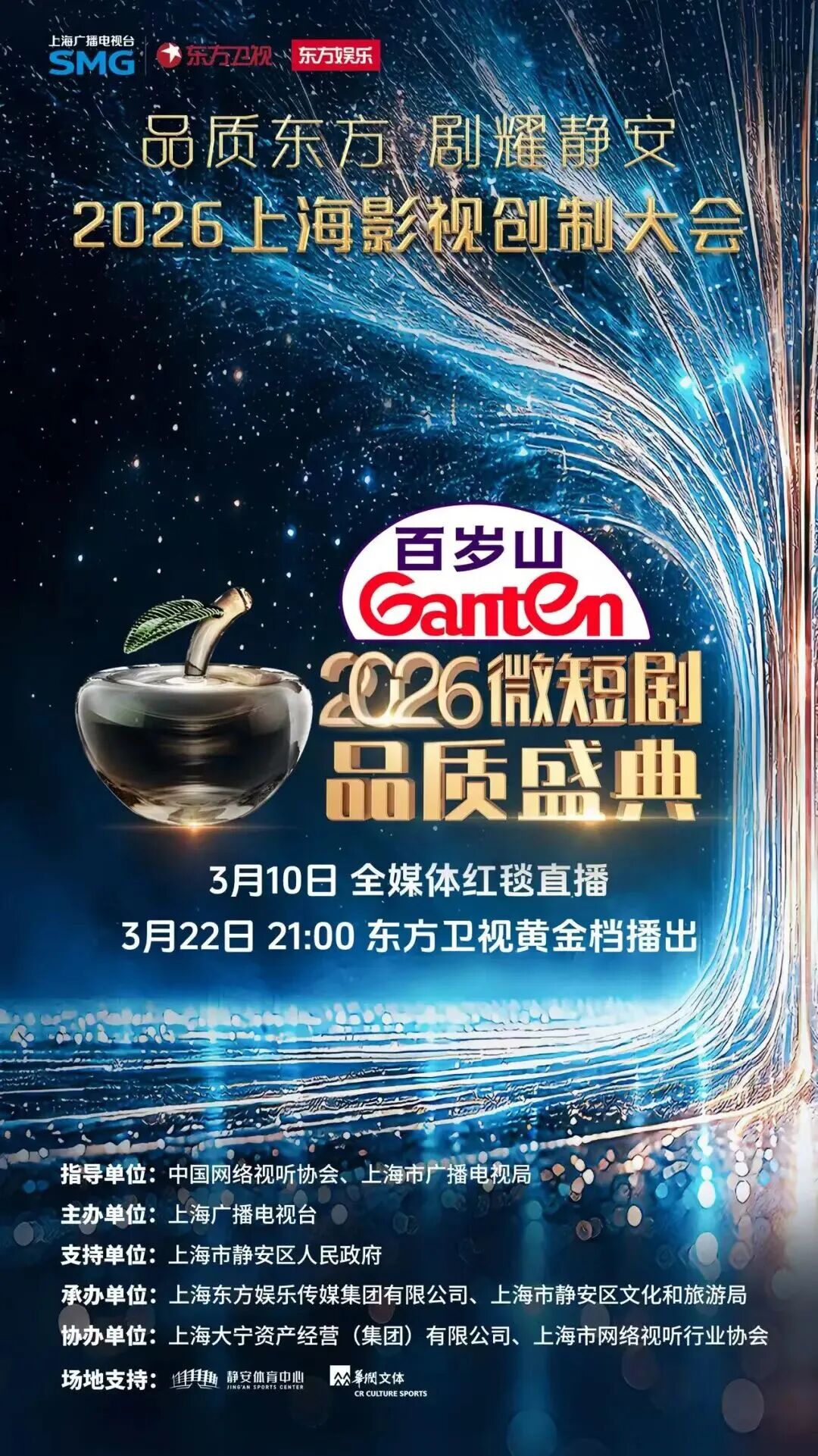 本届大会由中国网络视听协会、上海市广播电视局指导,上海广播电视台主办,上海市静安区人民政府支持,上海融东方文化传媒有限公司承办,上海市网络视听行业协会协办。