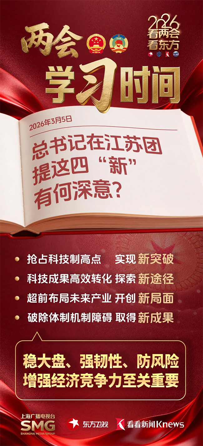 两会期间,《990早新闻》《东方新闻》《今晚》等各档新闻节目头版头条及看看新闻、阿基米德、第一财经、看东方APP等新媒体平台首屏首页第一时间宣传报道习近平总书记重要讲话精神,解读下团组活动。看看新闻推出《两会学“习”时间》专栏,制作《总书记在江苏团提这四“新”有何深意?》等海报短视频,深入阐释讲话精髓。同时聚焦上海代表团传达学习讲话精神,推出反响报道,展现代表委员结合上海实际、为全国挑大梁作贡献的深入思考。